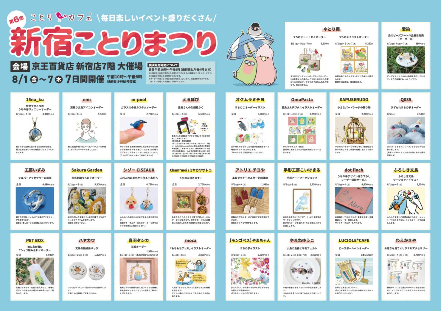 〈実演〉8月1~7日新宿ことりまつり(京王百貨店 新宿店)