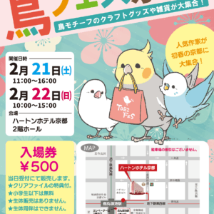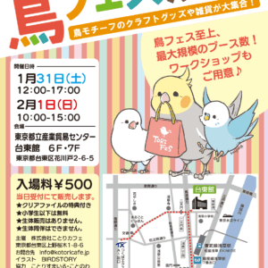 鳥モチーフの雑貨やハンドメイド作品、小鳥のおもちゃやフードなどを販売します。