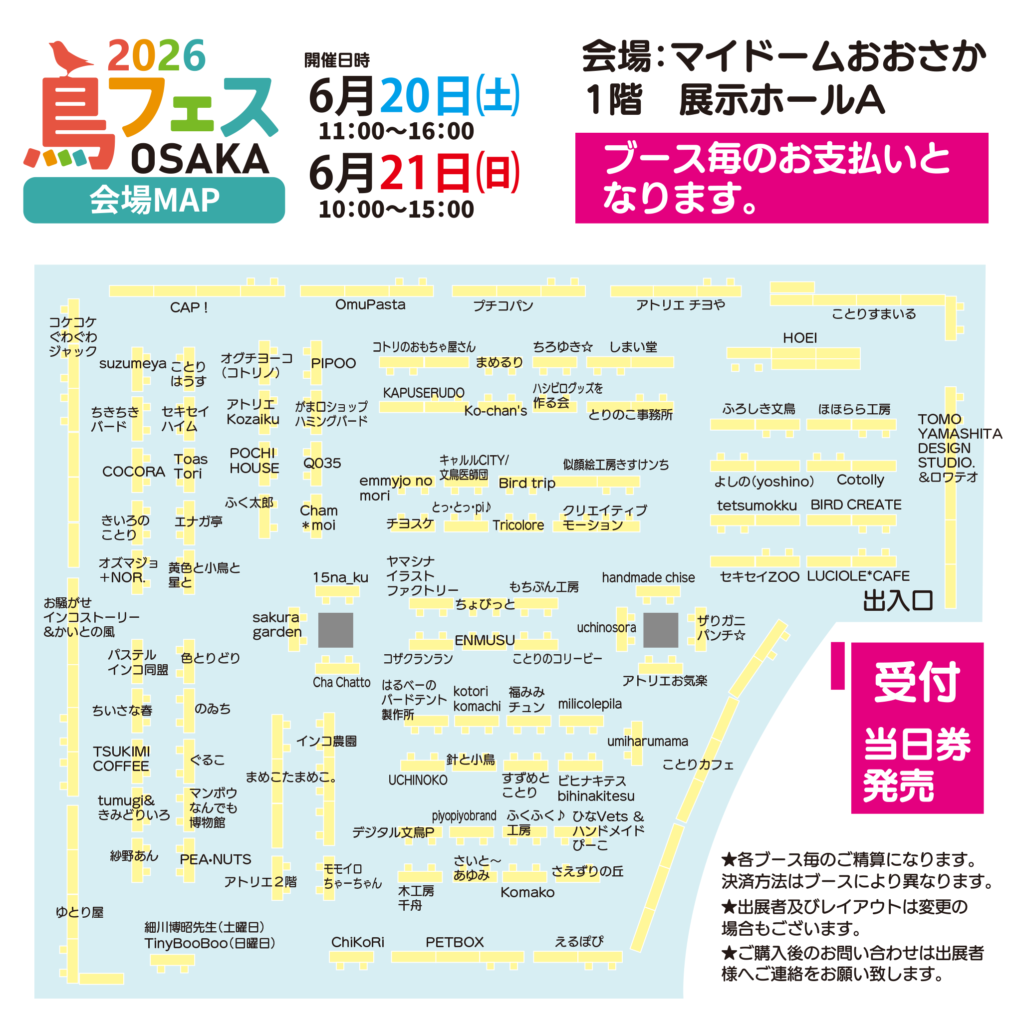 鳥フェス会場はブースごとのお会計となります。